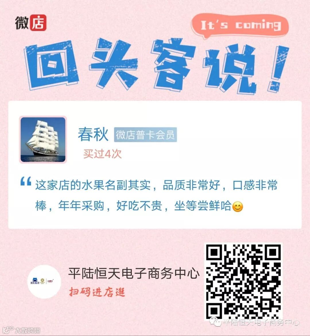 感谢您支持平陆恒天电子商务的发展,感谢您支持山区产业。