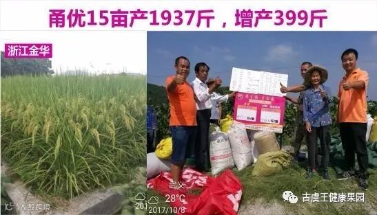 故事:去年(2017)我们应金华瑞尔公司邀请,在金华市武义县开了一场产品上市会,当时只给了10分钟时间,花了5分钟介绍劲驼,后来就没管武义县的市场了,因为这边不是重点市场。到9月中旬的时候,金华瑞尔的孙总对我说,武义县有个老头用了劲驼,说水稻很好看,打了几个电话叫我去看看,你有空去下。我到现场后立刻被震惊了,从来没见过这么高这么挺的水稻,拍了一些图片发给给孙总看,孙总听了我和公司业务员描述后,第二天就叫我带他去看看,看了之后,他说,开场观摩加订货会,这块田可以打破记录了,后来我们就准备开会,人数起初预计在整个金华能邀到40来人,由于效果好的太震撼了,开会当天居然来了100多人,连种子公司的都赶来了,种植大户个个都是上百亩的。会后当地一个千亩大户当场就说要100吨。国庆期间我们还对这块田进行了测产,产量竟然达到1937斤,打破了当地1800斤的记录,足足比对照增产400斤。