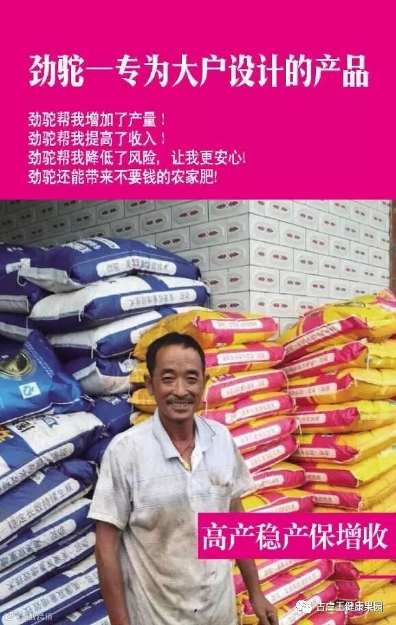 零售商给他介绍劲驼的时候,他说这么贵的肥料,贵死人。贪图小便宜,想买些便宜的肥料,当时来了几个外地人,听说是山东,河南那边的,开着车来到村里介绍一种有机肥,说是大促销,送脸盆,送水桶,还请吃饭,他就去买,还到村里宣传,说有个便宜的有机肥,原来3000块一吨,现在又添加了元素,才2000块一吨,有个村民因为买到这个肥,没拿到脸盆,没吃饭到还发牢骚。后来用到脐橙地里,拆开包一看,表面一层是鸡粪,下面都是铁丝,塑料渣(城市垃圾焚烧的废渣)。这才知道上当了,就打315投诉,工商局派人来查说,这个肥料一看就是被人拆了封口又重装的,天下哪有这么好的事,请吃饭又送盆送桶羊毛出在羊身上……