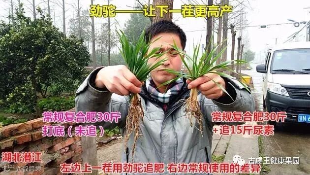 农户这才意识到骗局,零售商刚好介入此事,说你试试劲驼,他咬咬牙就买了几包,用下去半年,刚好17年冬季下雪又下冻雨,脐橙本是赣南特产,到南城温度更低更难扛,农户发现没用劲驼的脐橙叶子冻伤了,掉了一地的叶,就跑到零售店说,这个劲驼真是神奇了,怎么一片叶都不掉,我那没用劲驼的都掉了4个月了,掉光了。我们听说后就去现场了解情况,挖开滴水线附近的狠一看,用劲驼的全是根,密密麻麻的,根一堆棉花一样,农户非常激动,说,是啊根系真好,你看我这新梢,今年产量估计得翻倍,还是用这个劲驼肥料好,虽然贵点,过几天我那没用的全部要用,黄老板就在我旁边做生意,不会骗人……