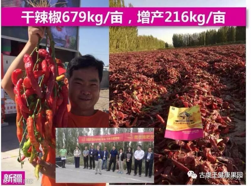 故事:新疆有个辣椒村,基本上都是上千亩的种植户,有个农户胆子特别大,种了500亩辣椒,第一次接触劲驼,就基本上全用上了,最后采收,干辣椒每亩增产200多公斤,当地收购价是10块钱一公斤,当时这个农户增收了100多万收入,不知道有多高兴,到处宣传劲驼肥料好,还说要杀牛给劲驼公司的人吃。后来我们去开会,盛情款待我们。