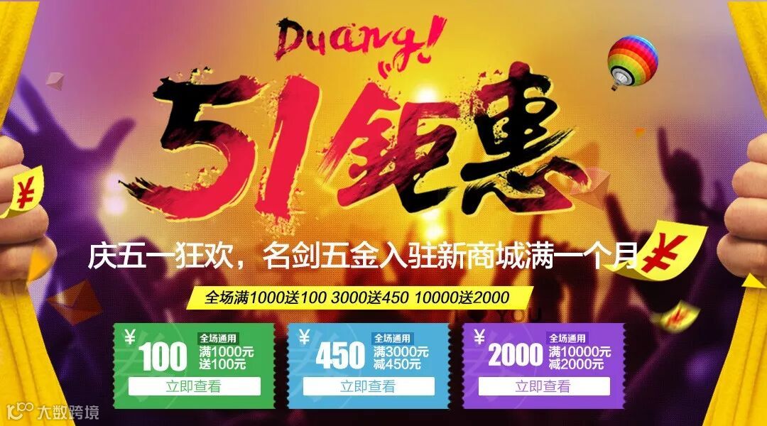 名剑入驻新商城满一个月回馈新老用户,现推出限时大优惠。消费满1000送100,满3000送450,满10000送2000,活动截止至2018-5-03号。