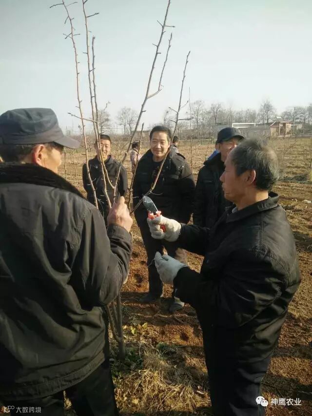 2月13日,神鹰农业技术专家、梨王刘明亮来到张村镇辛店村神鹰农业玉露香梨示范基地,为梨农讲解示范梨树修剪方法,传授梨树春季管理要点。