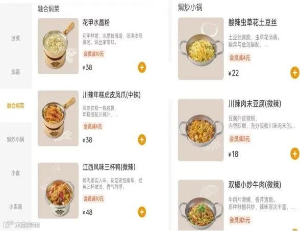 具体价格表现为:焖炒小锅单价普遍在20元左右,融合焖菜定价28-48元,小吃及饮品定价16-22元。