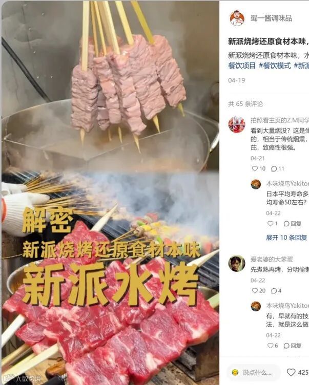 有的打破 “炭火 + 孜然” 的固有印象,用水烤、泥炉、滚筒等新奇方式重塑烧烤体验;