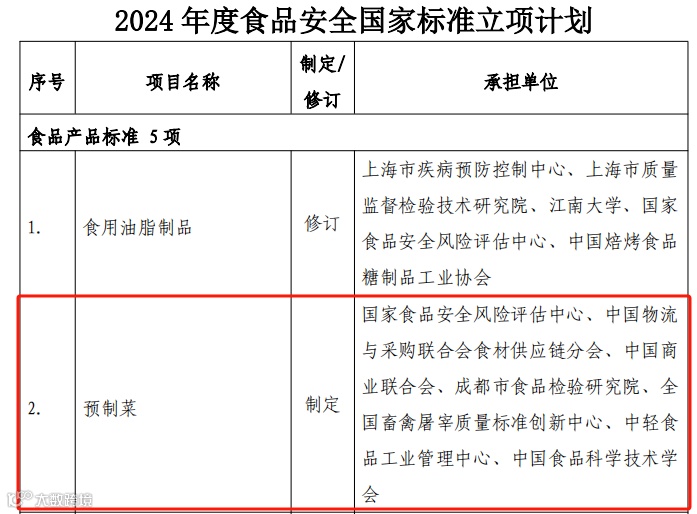 1、预制菜国家标准立项