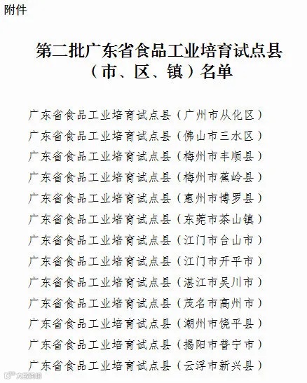 4、13地入选!第二批广东省食品工业培育试点县(市、区、镇)名单公布