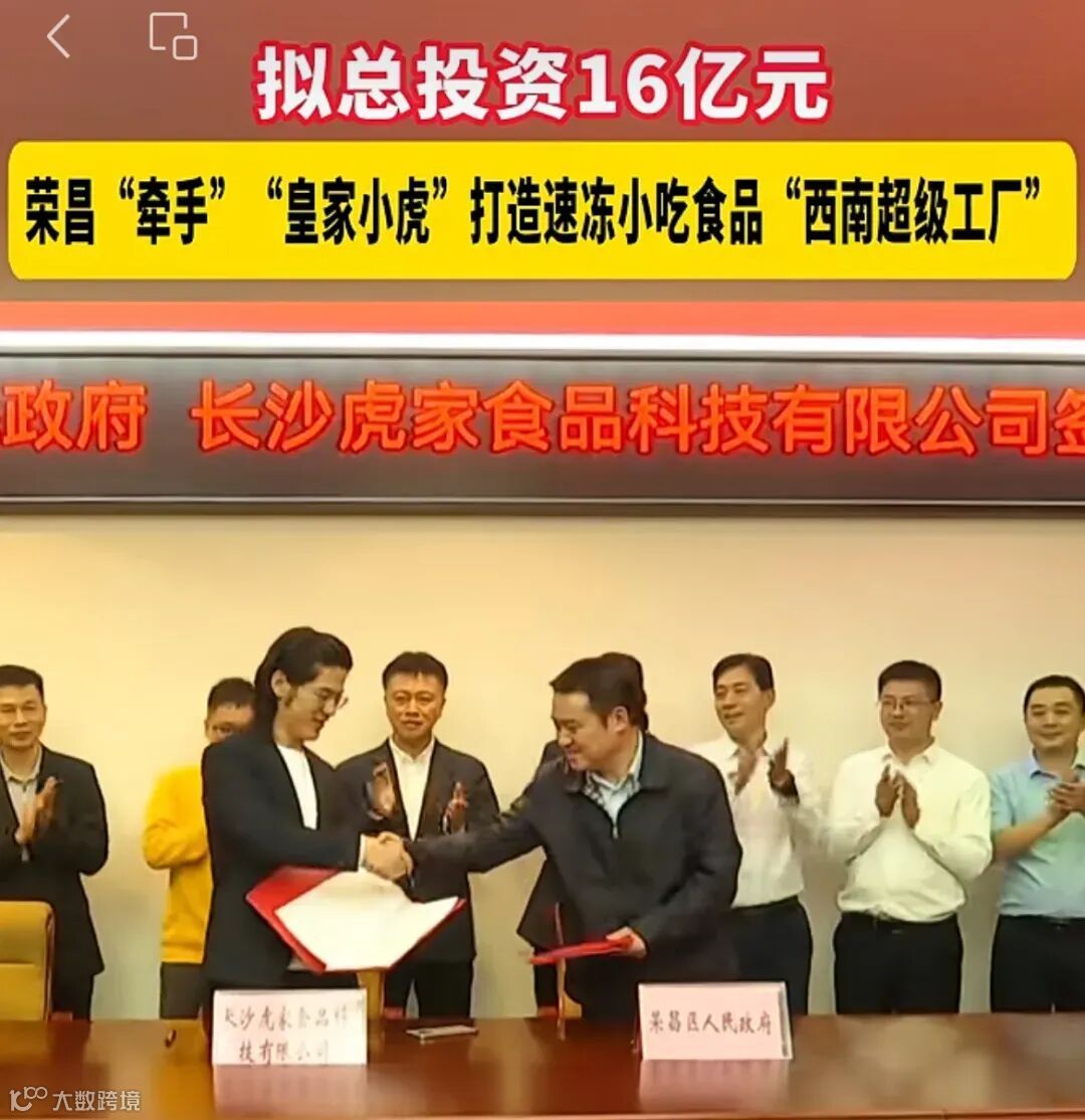 11月14日,荣昌与长沙虎家食品科技有限公司(简称“皇家小虎”)签订合作协议,拟总投资16亿元,在荣建设速冻小吃食品“西南超级工厂”(标杆工厂)。