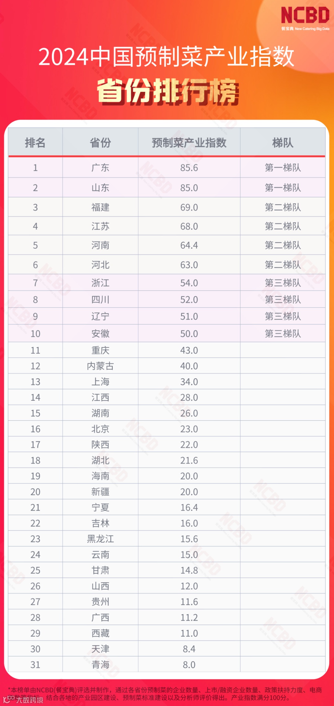1、2024中国预制菜产业指数省份排行榜:广东、山东遥遥领先