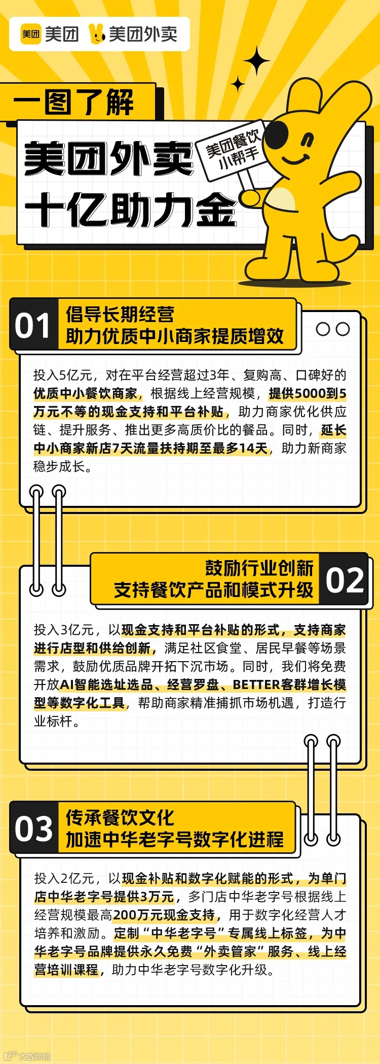 4、美团外卖启动10亿助力金,支持餐饮优质商家创新发展