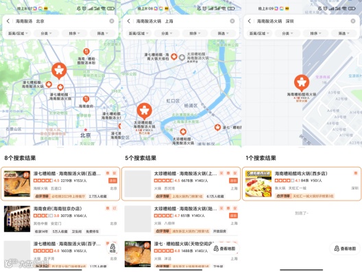 云南酸汤在北上广“批量复制”。在大众点评上定位上海后搜索“云南火锅”,结果显示有81534个相关条目;而搜索“云南酸汤火锅”则高达143442个结果,其中新店占比不小。