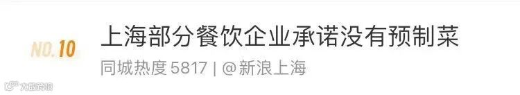 为了获得消费者信任,最近,上海有部分餐饮企业主动打出“没有预制菜”的口号,相关话题迅速冲上同城热搜↓