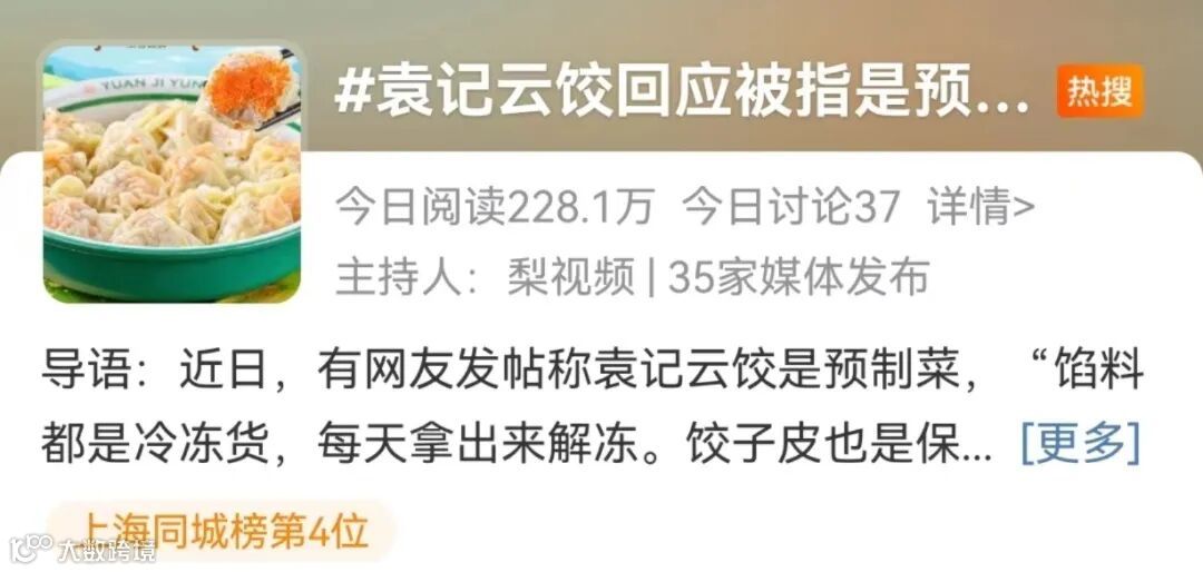 今年9月,主打新鲜现包云饺的袁记云饺,被控诉大量使用预制菜,相关话题引起热议