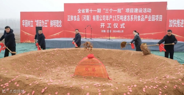 1月2日,正阳县举行全省第十一期“三个一批”项目建设活动暨正阳县正鲜食品(河南)有限公司年产15万吨速冻系列食品产业园项目开工仪式。