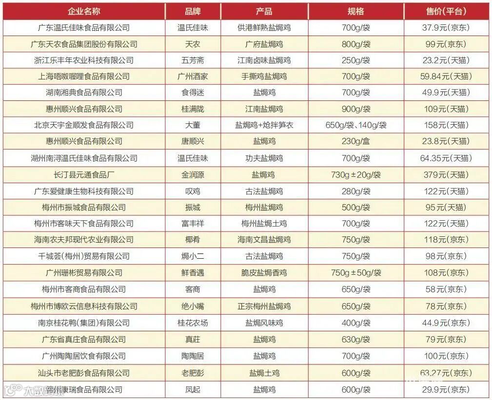 现阶段,我国研发和生产盐焗鸡产品的企业众多,主要聚集在广东一带,比如,天农食品、广州酒家、客商食品、陶陶居……