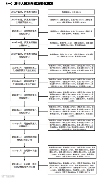 招股书显示,白家阿宽食品历经多次增资及股权转让,先后引入多家外部股东,包括南海成长、霍普投资、前海投资、常州彬复、高瓴怿恒、茅台建信等。