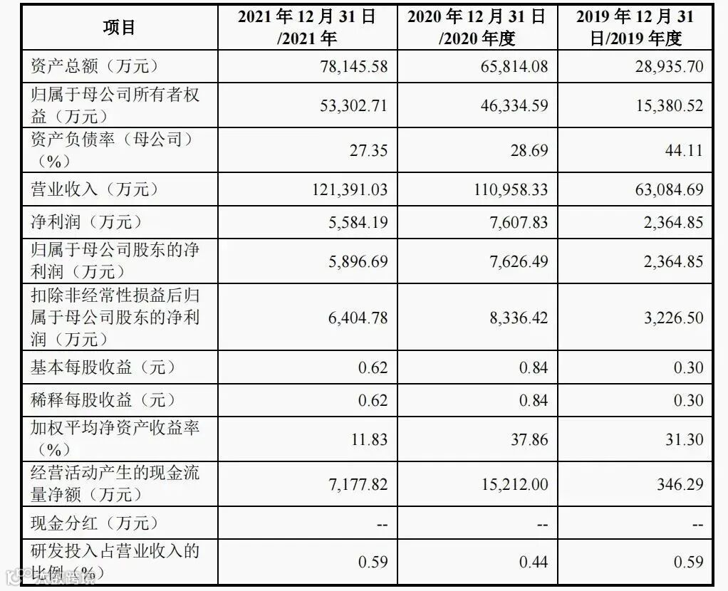 据招股书显示,2019年-2021年、2022年上半年阿宽食品实现营收分别为6.31亿元、11.10亿元、12.14亿元、6.41亿元,分别同比增长49.54%、75.89%、9.40%、8.10%;实现归母净利润依次为2364.85万、7626.49万、5896.69万、3797.16万,分别同比增长288.65%、222.49%、-22.68%、73.15%。
