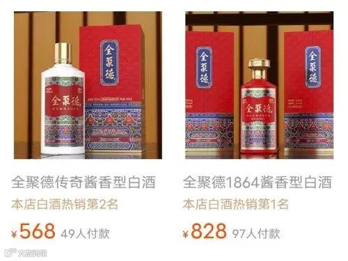 目前主流线上平台全聚德该两款白酒仅天猫有售,且月销量极小,标价更高的“全聚德·1864”月销100+,而更便宜的“全聚德·传奇”月销只有66瓶。