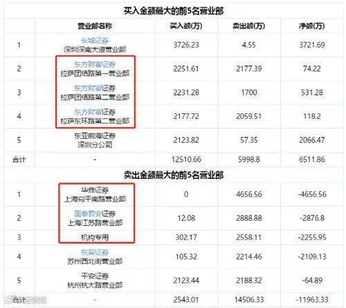 买二到买四的三家席位均来自东财拉萨系,合计买入金额超过6600万元,占到买入前五总额的一半以上。