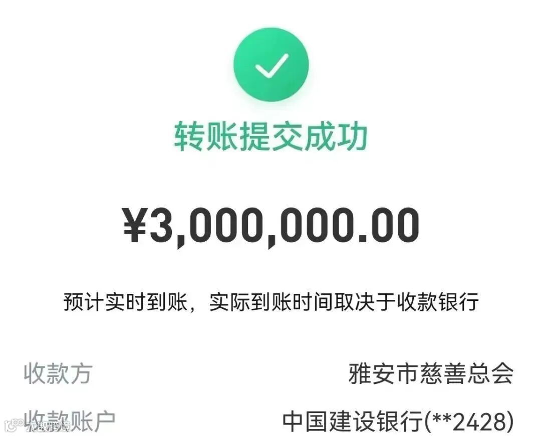 三全食品创始人陈泽民先生获悉消息后,立即通过雅安市慈善总会捐助300万元,支持雅安的抗震救灾工作。