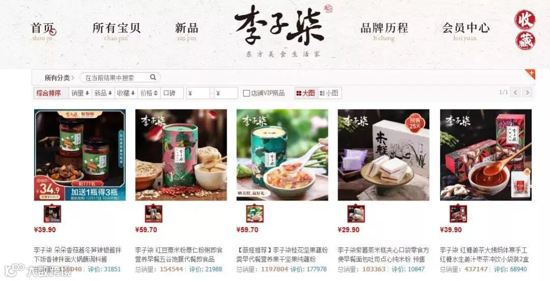 2018年李子柒天猫旗舰店正式开业,推出了例如螺蛳粉、藕粉、鲜花饼、参蜜等特色食品。