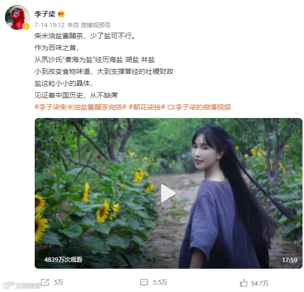 最早李子柒在微博上做一些古风短视频,被刘同明发现,双方开始了合作。