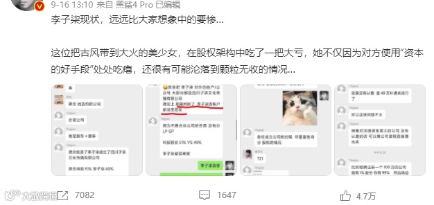 此外,还说李子柒现状远远比大家想象中的要惨,在股权架构中吃了一把大亏,不仅因为对方使用“资本的好手段”处处吃瘪,还很有可能沦落到颗粒无收的情况。