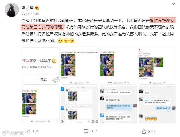 而李子柒助理的最新微博里,也承认了李子柒正在整理公司与第三方公司的问题。