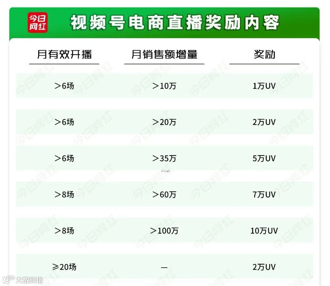 微信视频号近日推出了新的电商直播扶持政策,对完成有效开播场次的和实现直播间销售额增量的,奖励相对应的数据流量。