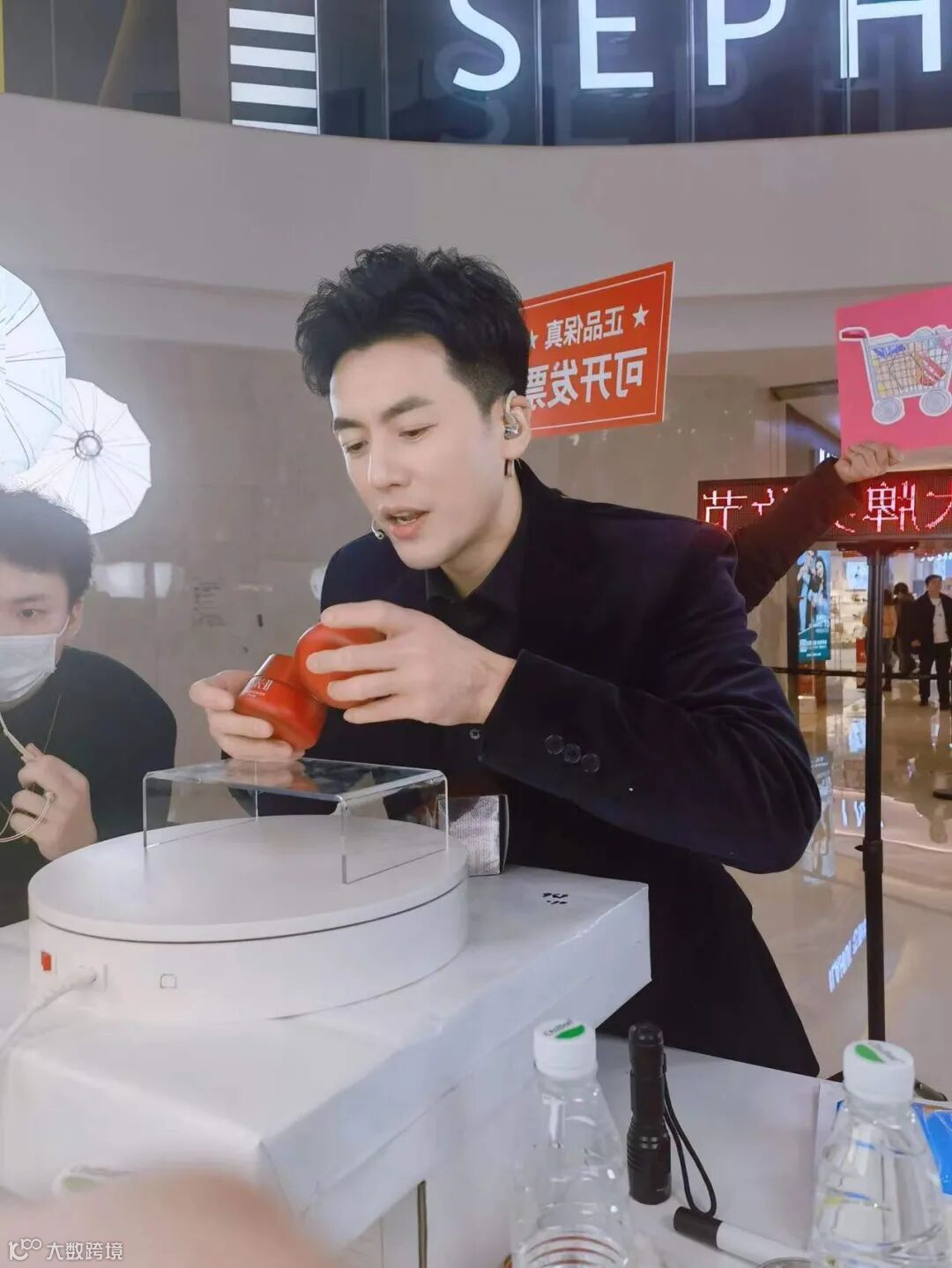 这也是一场体力战,久站数小时的范十二,短暂的休息过后,来不及喝上几口水,又再度出现在镜头里,向观众们介绍起产品。