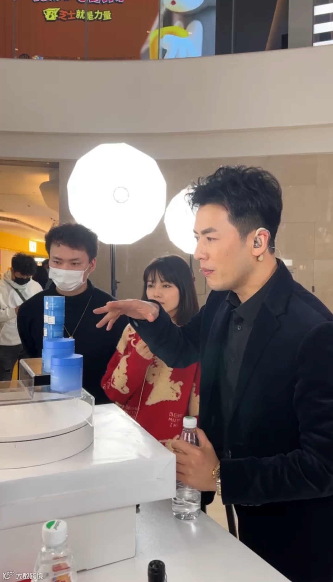 在工作人员检查好设备后,他便迅速站到镜头前,围绕着他的十几名工作人员随即进入“战斗状态”。