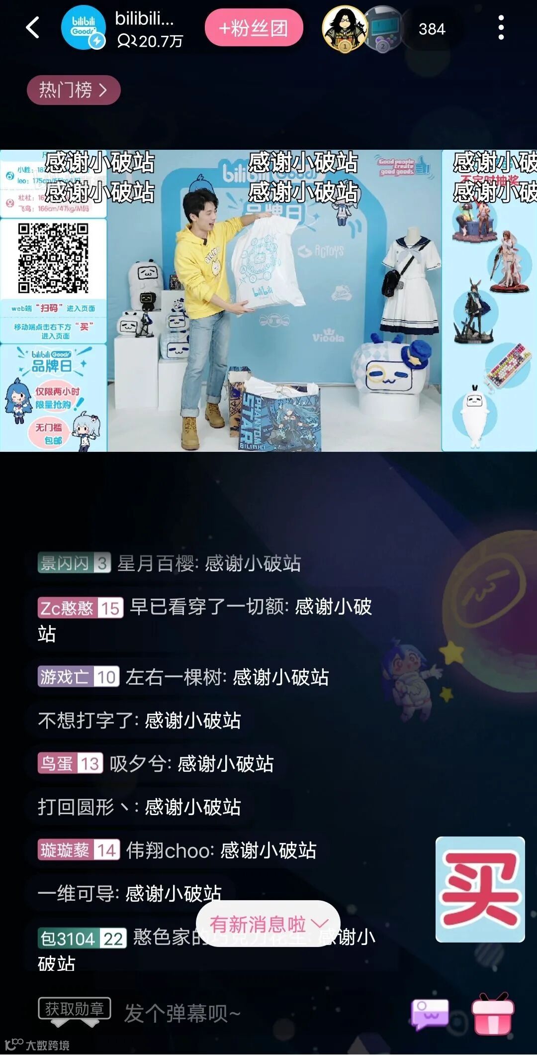 今年9月,哔哩哔哩曾邀请4位UP主举行了一场小型的带货直播。尽管直播品类主要以手办、周边和部分服饰等生活用品为主,但直播间人气平均峰值却依旧达到了