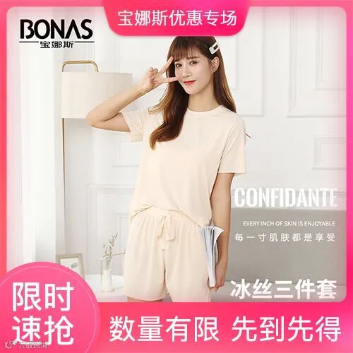 宝娜斯冰丝三件套简约时尚舒适纯色