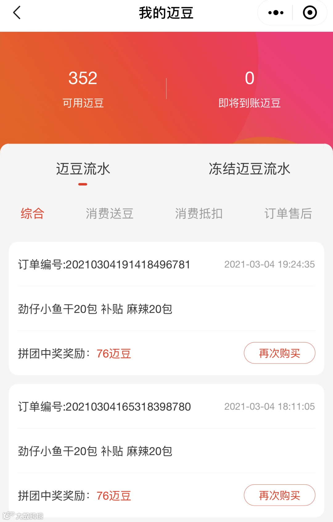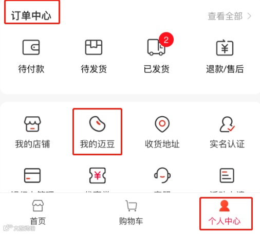 2、迈豆查看方式:打开先迈网小程序个人中心,点击“我的迈豆”可以查看拼中的迈豆奖励,迈豆可以在迈豆专区进行消费。