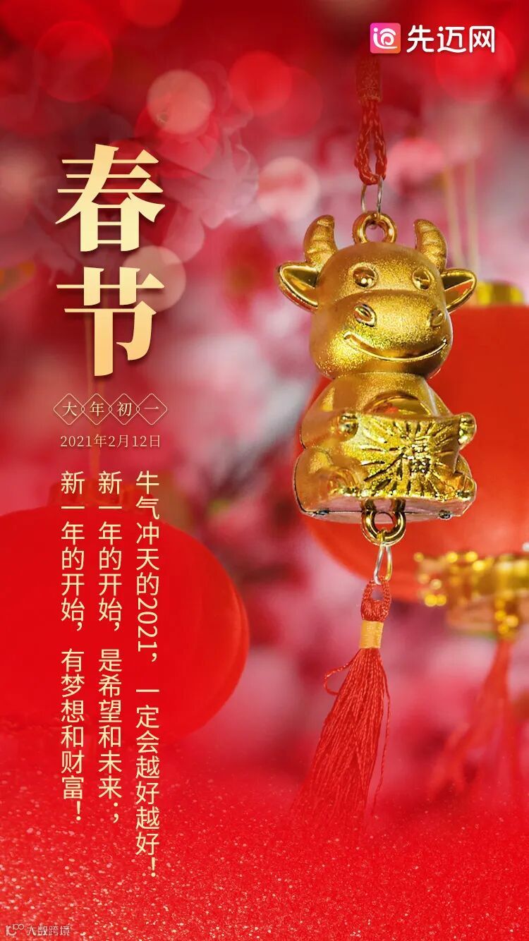 //真诚携手,我们财富共赢。同舟共济,我们风雨共担。砥砺奋进,我们成功共享。崭新的金牛年,我们一路同行,祝先迈家人牛年大吉,万事如意!