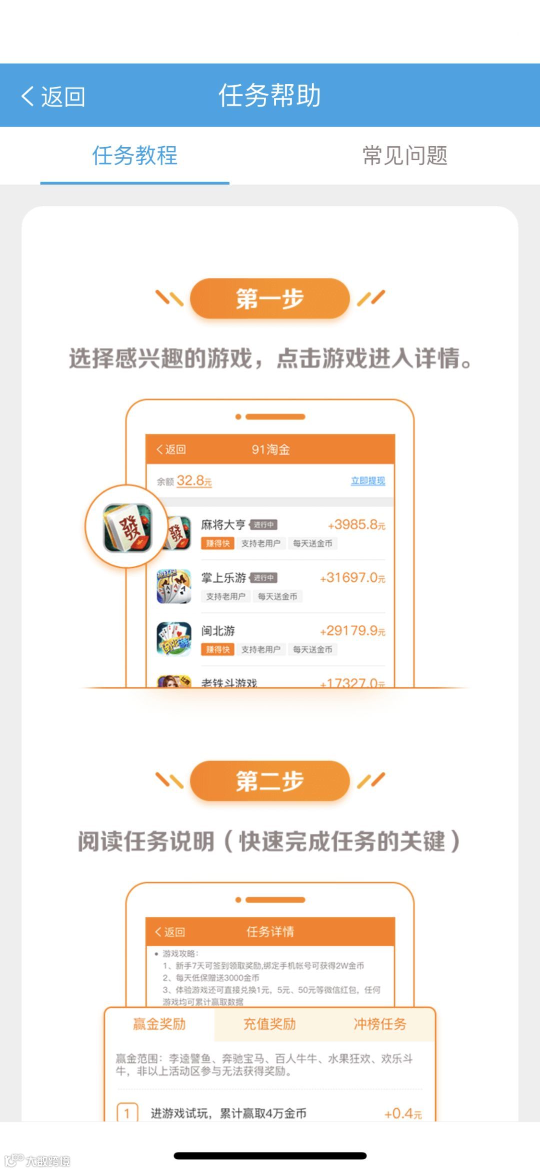 玩游戏过程中有疑问,可在“任务详情”→“任务帮助”,查看“任务教程”以及“常见问题”。