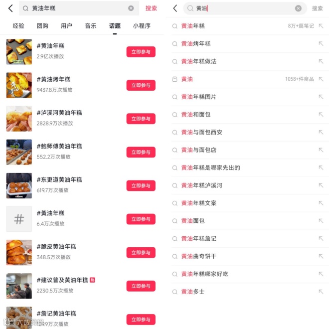 一方面,平台通过#黄油年糕复刻#、#黄油年糕刺客#等细分标签,将流量从单一产品扩散到关联场景,形成“话题矩阵”。