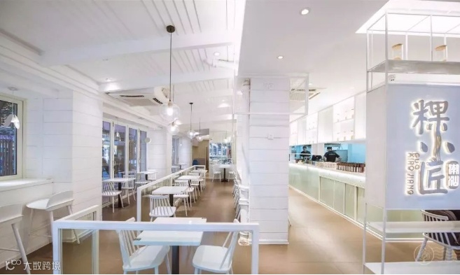 于是,粿条品牌店进军京沪之后,门店装修也开始走向时尚年轻化。深圳的粿小匠采用宜家风格装修,以白色为主色调。