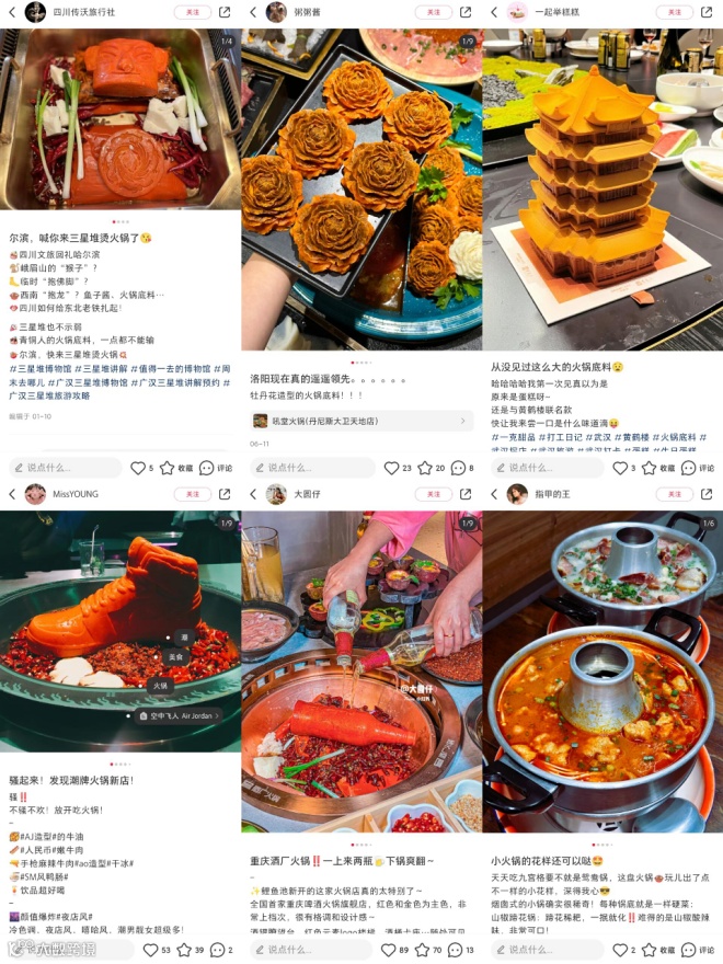 更有火锅品牌结合本地特色,推出洛阳牡丹花、武汉黄鹤楼、四川三星堆等主题底料。