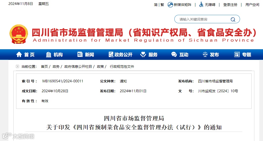 11月1日,四川省市场监管局印发《四川省预制菜食品安全监督管理办法(试行)》,该办法所指预制菜也称预制菜肴,是以一种或多种食用农产品及其制品为原料,使用或不使用调味料等辅料,不添加防腐剂,经工业化预加工(如搅拌、腌制、滚揉、成型、炒、炸、烤、煮、蒸等)制成,配以或不配以调味料包,符合产品标签标明的贮存、运输及销售条件,加热或熟制后方可食用的预包装菜肴。并指出包括速冻面米食品、方便食品、盒饭、盖浇饭、馒头、糕点、肉夹馍、面包、汉堡、三明治、比萨等在内的主食类食品不纳入预制菜许可范围。