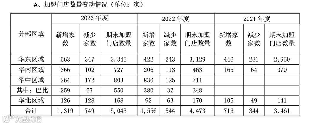 从门店数目来看,2023年,巴比食品新增加盟门店合计1319家。截至报告期末,加盟门店数目合计5043家,较2022年期末净增加570家。