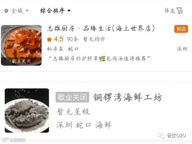 其中开在深圳的海鲜餐厅“志雄厨房·品臻生活”,从开业到关门不到1年时间。