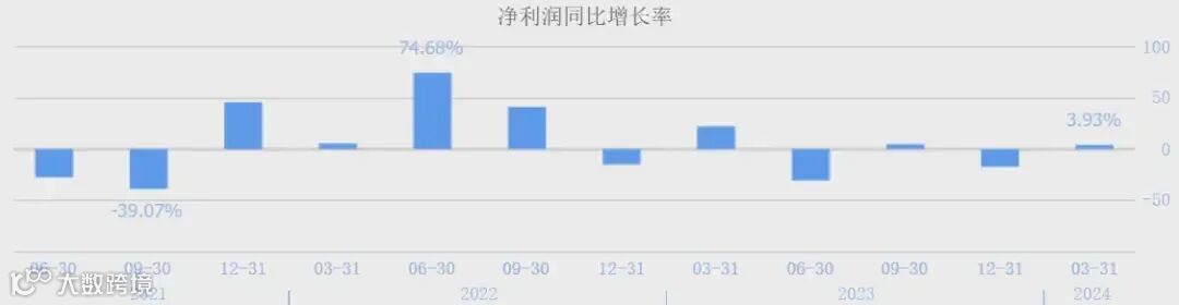今年一季度,涪陵榨菜业绩再度失速,营收7.49亿、同比下滑1.53%,净利润2.72亿、同比微增3.93%。而这已经是涪陵榨菜净利润连续4个季度增速小于5%,其中2023年2季度、4季度还分别下滑30.77%、17.33%。