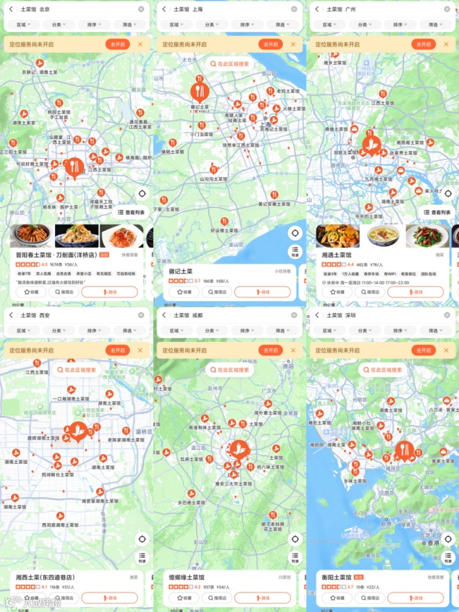在“大众点评”上搜索“土菜馆”,截至2024年5月底,北京、上海、广州、西安、深圳、成都等地均有“土菜馆”的分布。