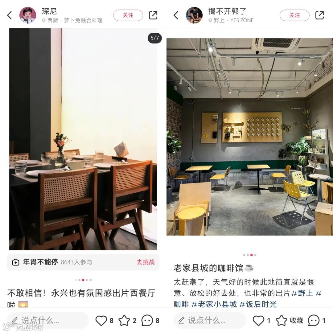 从大城市返乡,寻求“熟悉感”的返乡人,通过互联网来到低线城市和小县城的网红店,转头又把打卡的照片配上“没想到老家也有这么美的店”“出片率高”“XX春节聚会必来”的标签,传上小红书、抖音和朋友圈,吸引更多人。