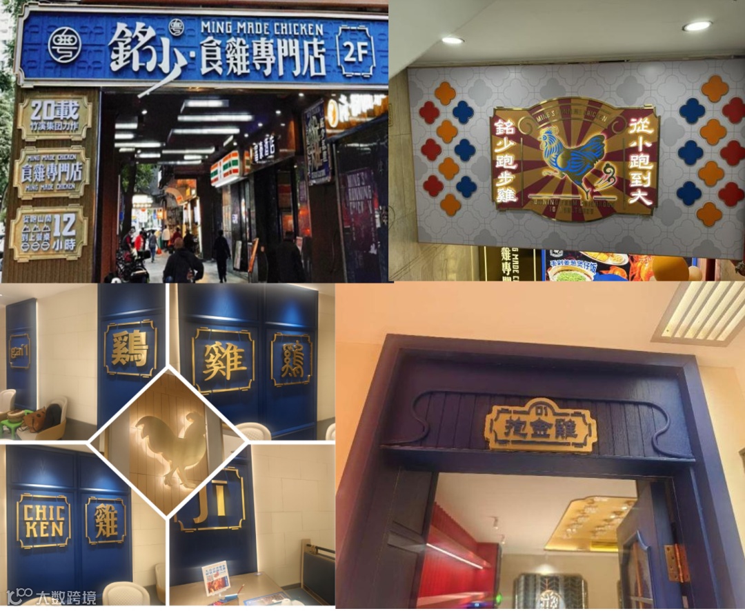 首先,在牌匾上做功夫。“结合品牌vi颜色和图标等,通过广告字的各种设计形式,展现铭少食鸡专门店的品牌,将‘食鸡’这两个字与铭少深度绑定的同时,也吸引顾客带着兴趣走上二楼。”