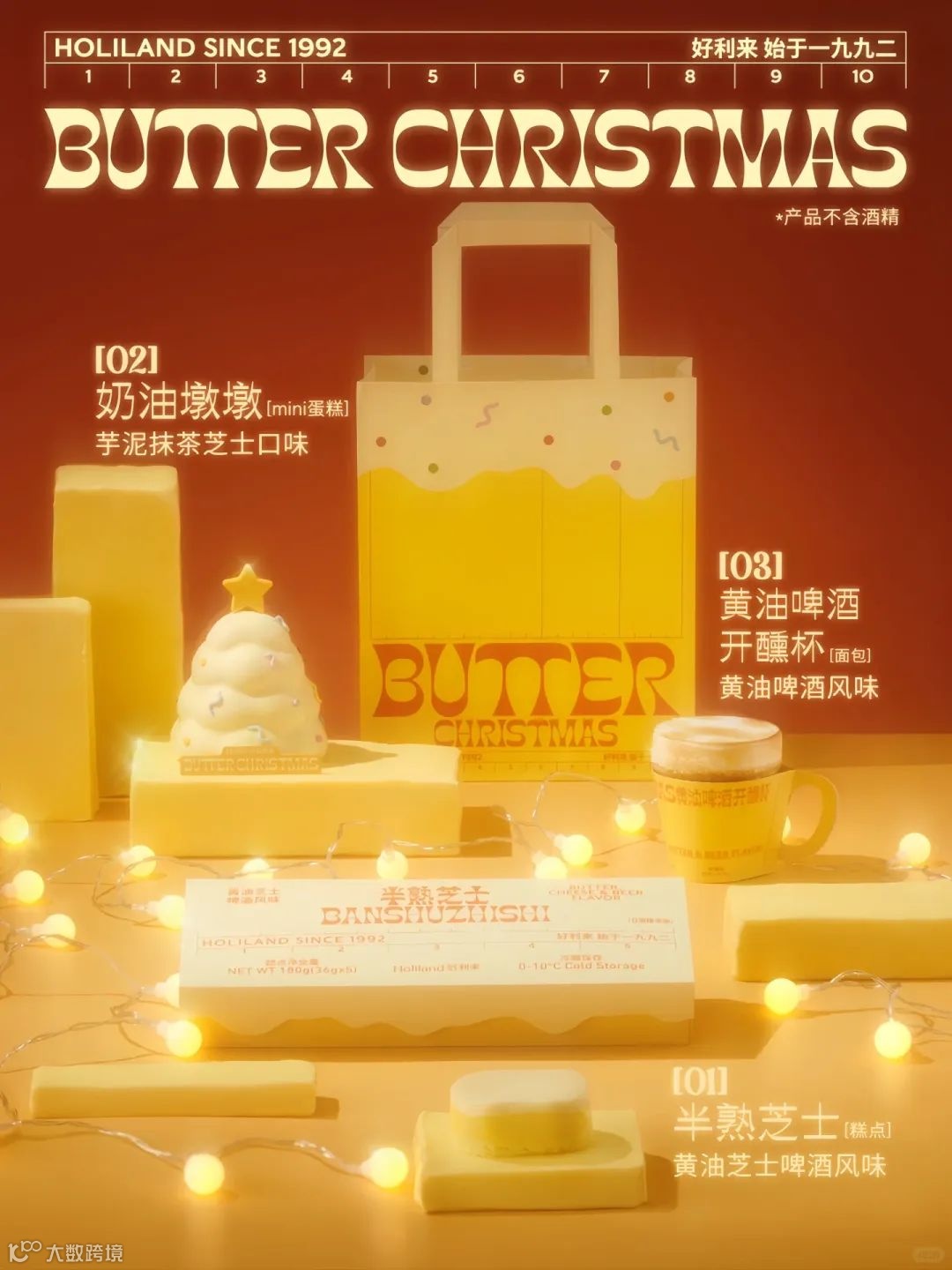 近日,好利来圣诞新品“黄油圣诞系列”上线,包含“黄油芝士啤酒风味半熟芝士”、“奶油墩墩迷你蛋糕”“黄油啤酒开醺杯”三款产品。