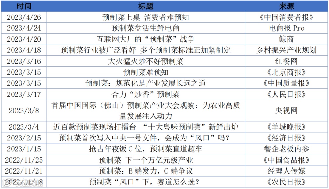 表4-1 预制菜相关热点文章