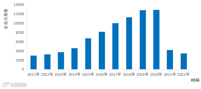 图2-3 2013-2022中国预制菜相关企业注册量 (图表数据来自迈点研究院《2022年中国预制菜产业发展报告》和艾媒咨询《2022年中国预制菜产业发展白皮书》)