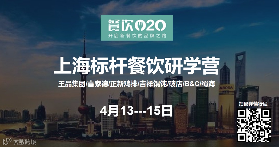 4月13-15日,餐饮O2O第四期上海标杆餐饮研学营,走进王品集团、喜家德、正新鸡排、吉祥馄饨、破店、蜀海等企业,深度学习上海头部餐饮品牌和最新商业模式!